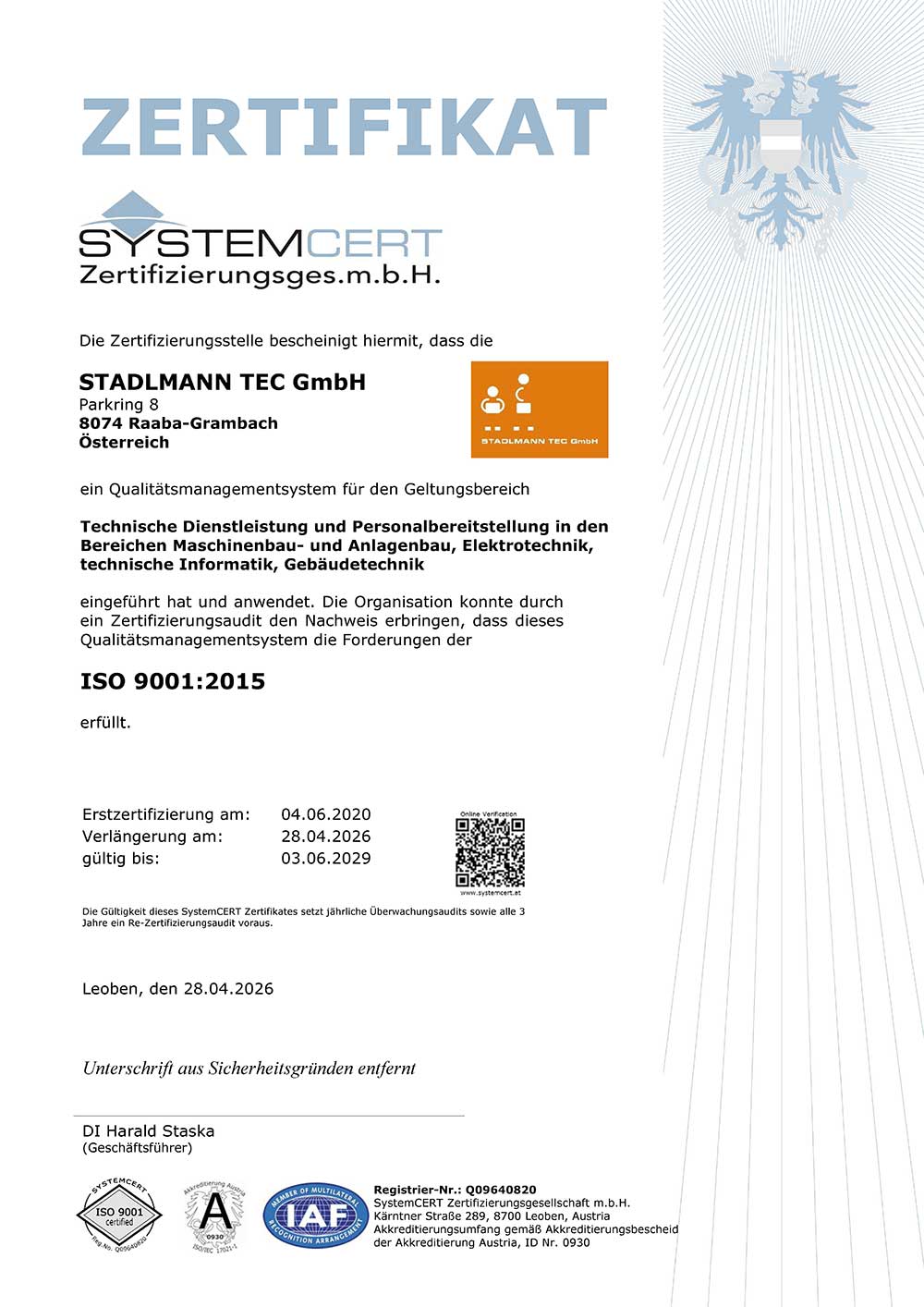 ISO 9001:2015 ZERTIFIZIERUNG